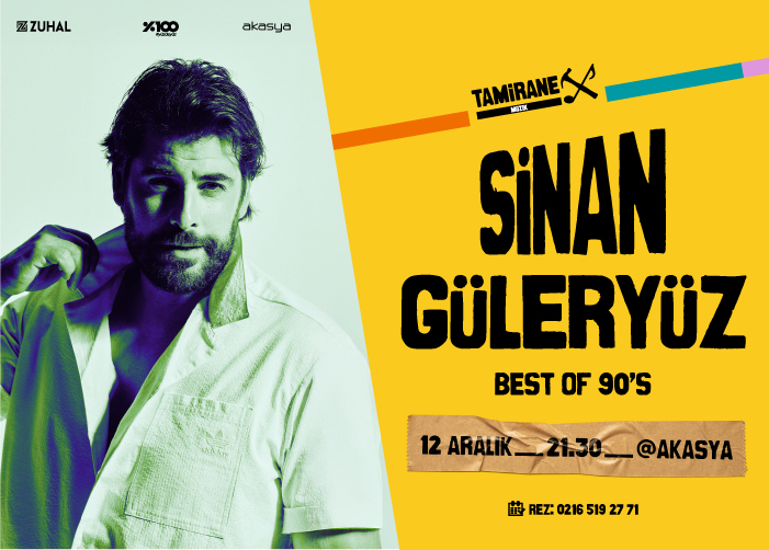 90’lı yılların en popüler ve hala dinlemeye doyamadığımız şarkılarını coverlayıp enfes yorumuyla sunan Sinan Güleryüz 12 Aralık Cuma akşamı saat 21:30’da Tamirane Akasya’da!