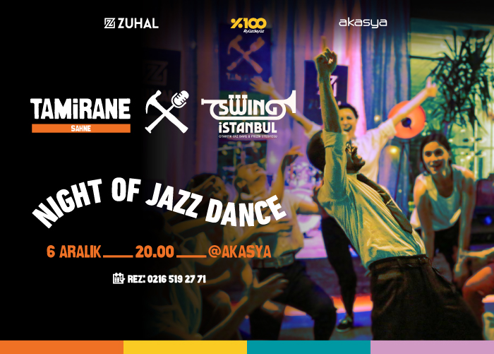 Dönemin harika müzikleri eşliğinde onlarca dans severle birlikte gönlünüzce dans edebileceğiniz enerji ve neşe dolu bir etkinlik. Dans etmek isteyen herkesi bu geceye davet ediyoruz. Swing İstanbul "Night of Jazz Dance" 6 Aralık Cumartesi akşamı saat 20:00’de Tamirane Akasya’da!